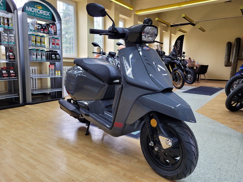 Die neue Lambretta X125 bewahrt in ihrem Design das perfekte Gleichgewicht zwischen klassischen und modernen Neo-Retro-Rollern. Dieses Modell zeichnet sich durch sportliche und scharfe Linien und ein innovatives Design aus.
