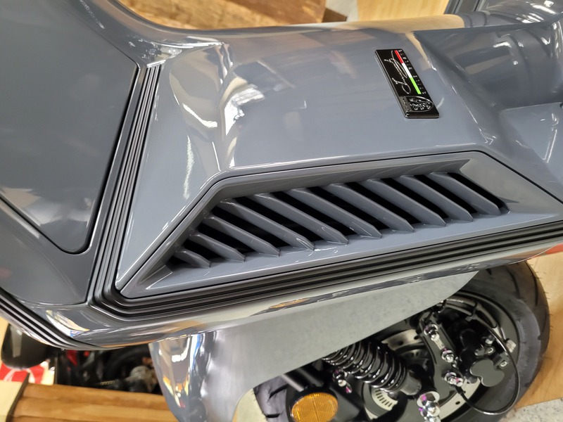 Das Chassis besteht aus einer Stahlrohrstruktur, die mit einer Halbkarosserie kombiniert ist, die das Schild mit den klassischen polierten Stahlplatten der italienischen Marke verbindet. Es verfügt über eine klassische Schwing-Vorderradaufhängung und Doppelstoßdämpfer mit Scheibenbremsen. Die Luftauslässe haben ein innovatives, klares Design mit futuristischem Look.